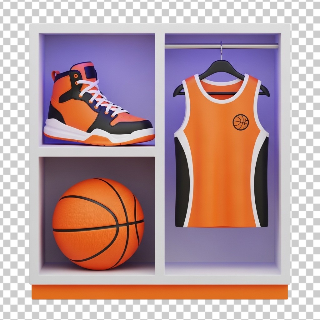 3D Sports Locker Room with Basketball Sneaker and Jersey PNG Transparent Background
