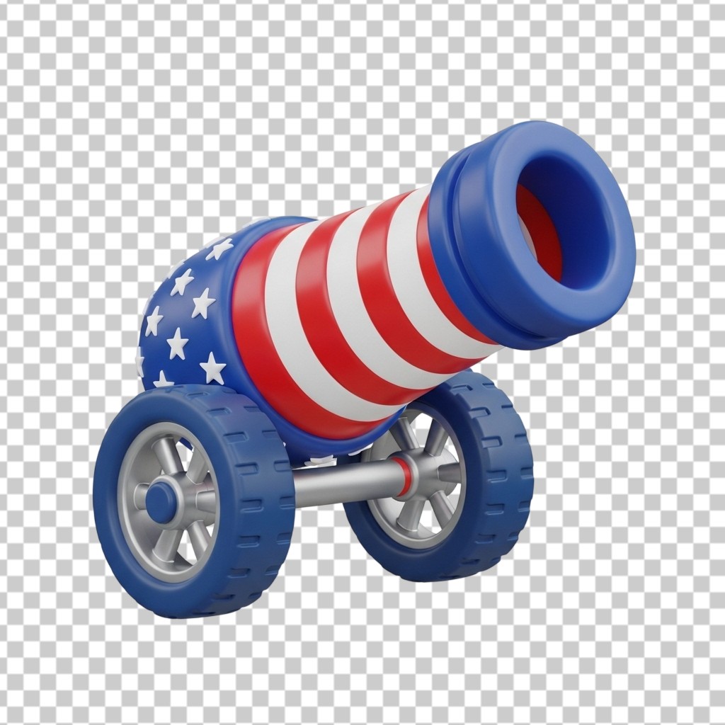 3D Celebration Cannon with United States Flag Pattern PNG Transparent Background