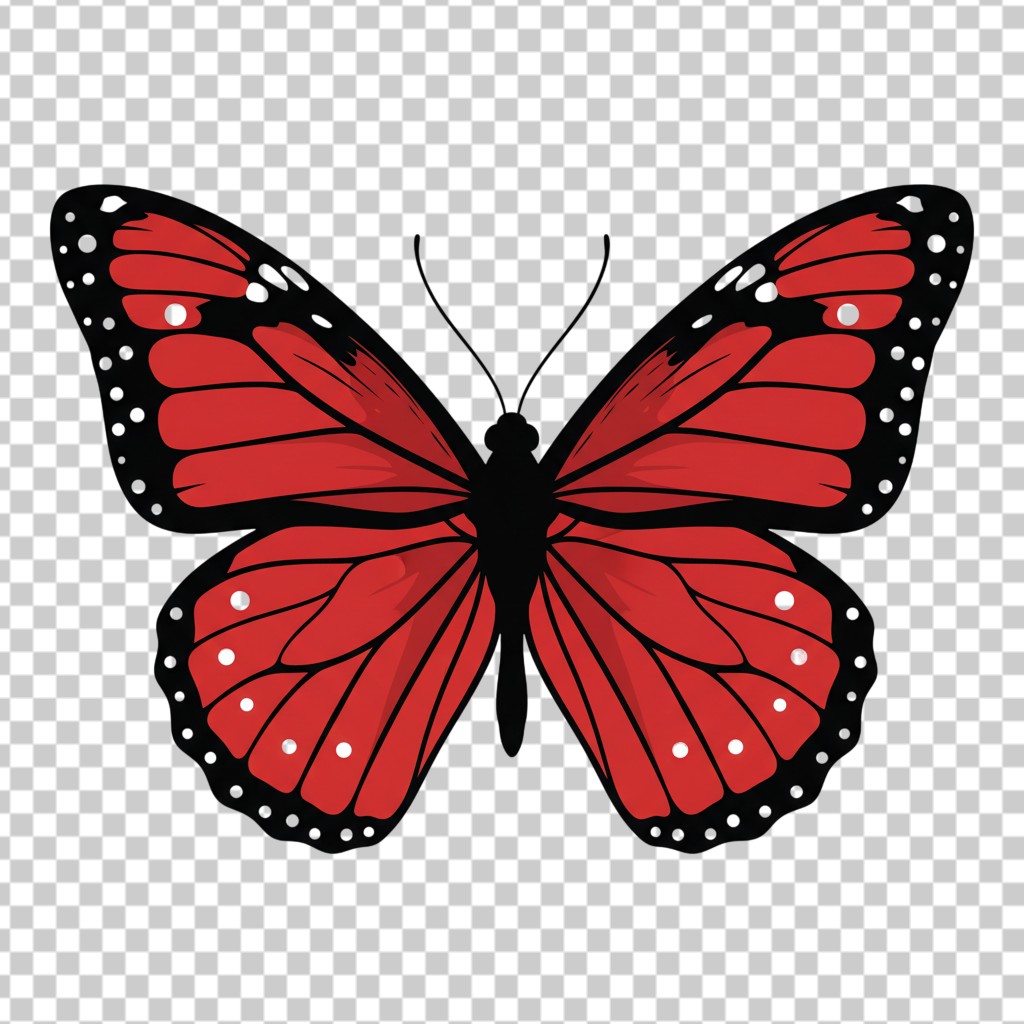 Beautiful Red Butterfly with Black Wing Patterns Illustration PNG Transparent Background