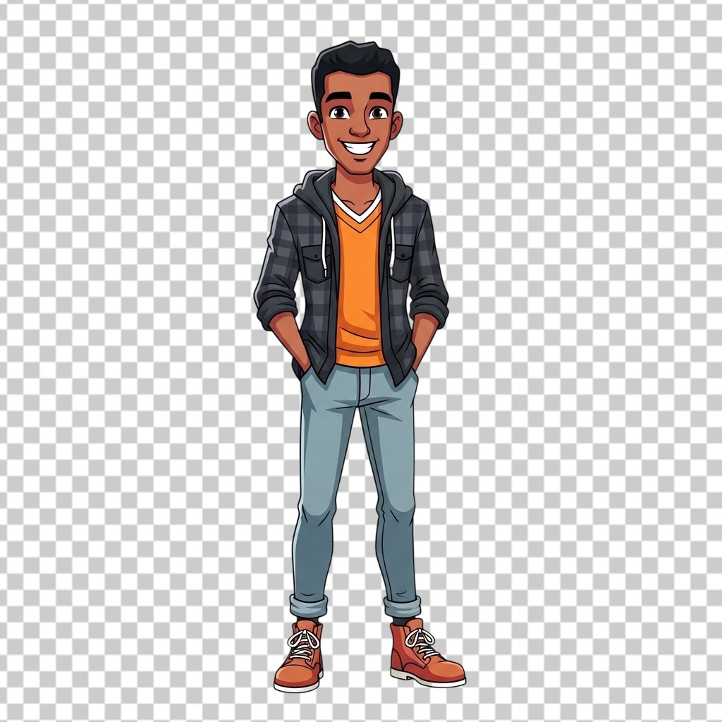 Cool Cartoon Character Man Wearing Leather Jacket PNG Transparent Background