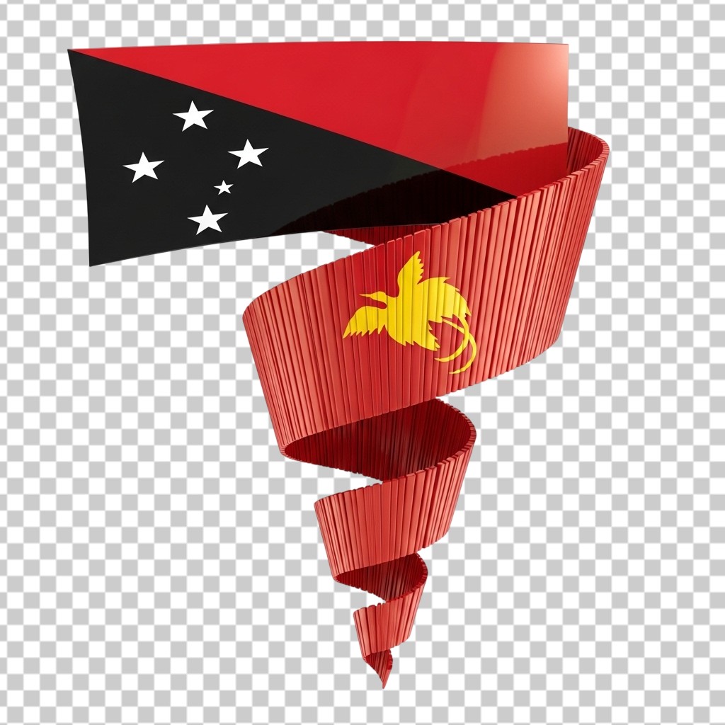 Swirled Ribbon Banner in the National Colors of Papua New Guinea PNG Transparent Background