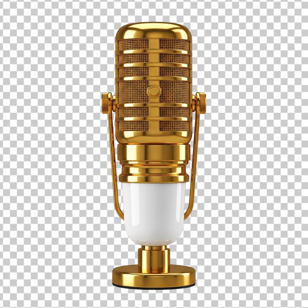 Classic Vintage Style Professional Golden Microphone on Stand PNG Transparent Background
