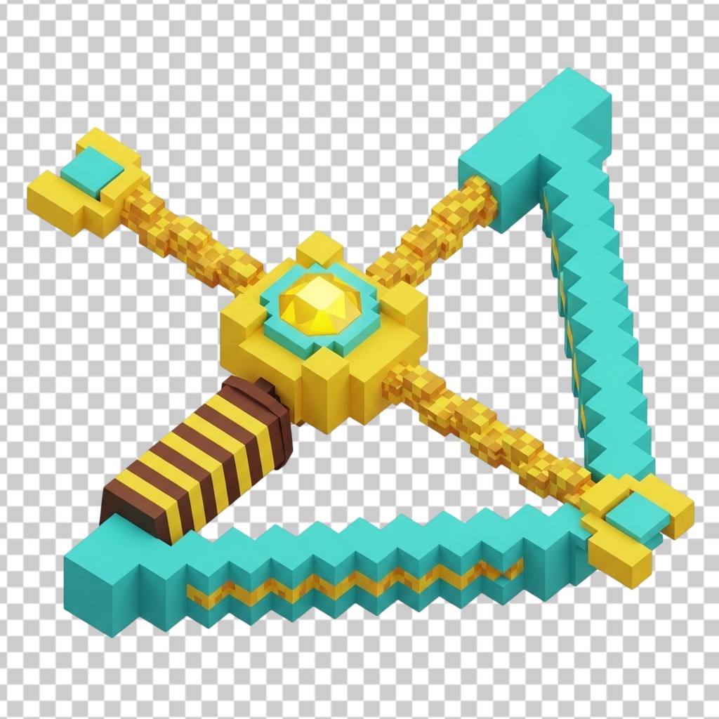 Voxel Style Pixel Art Fantasy Bow and Arrow Weapon for RPG Games PNG Transparent Background