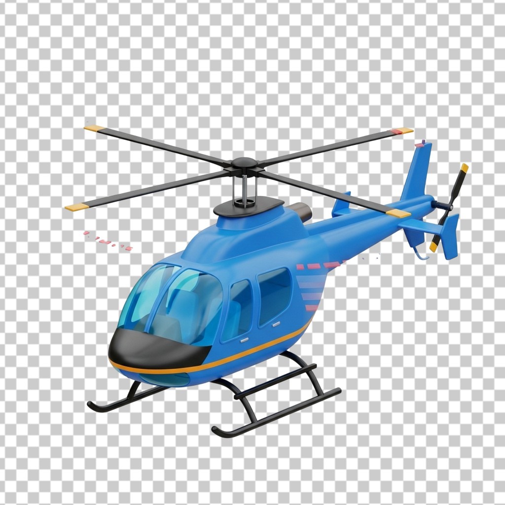 3D Blue Helicopter Aircraft Transportation Illustration PNG Transparent Background