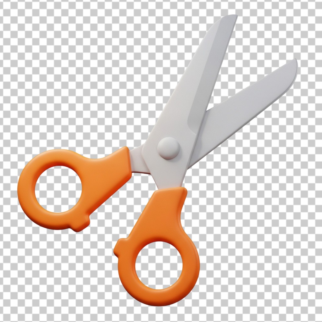 Pair of Scissors with Orange Handles 3D Tool Icon PNG Transparent Background