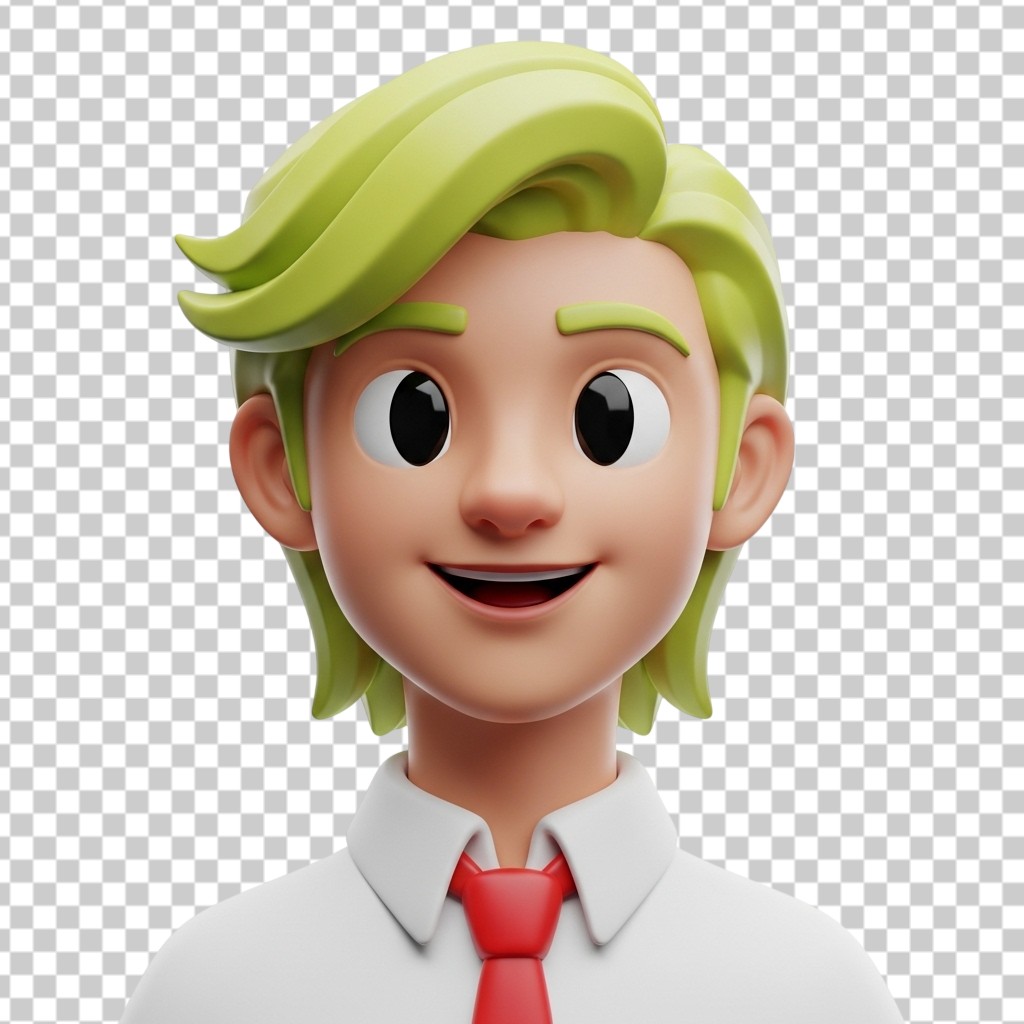 3D Young Male Student Character Head Avatar PNG Transparent Background