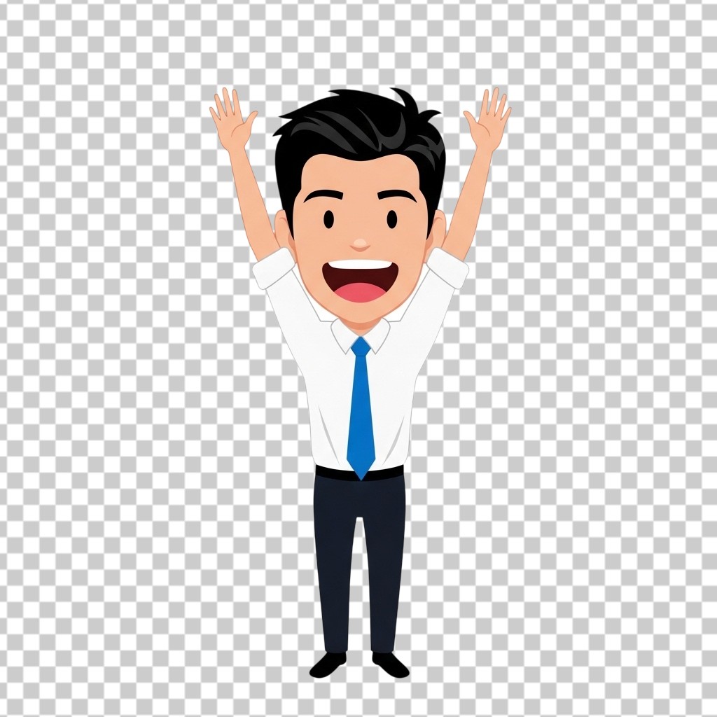Happy Cartoon Businessman Character Celebrating with Raised Arms PNG Transparent Background