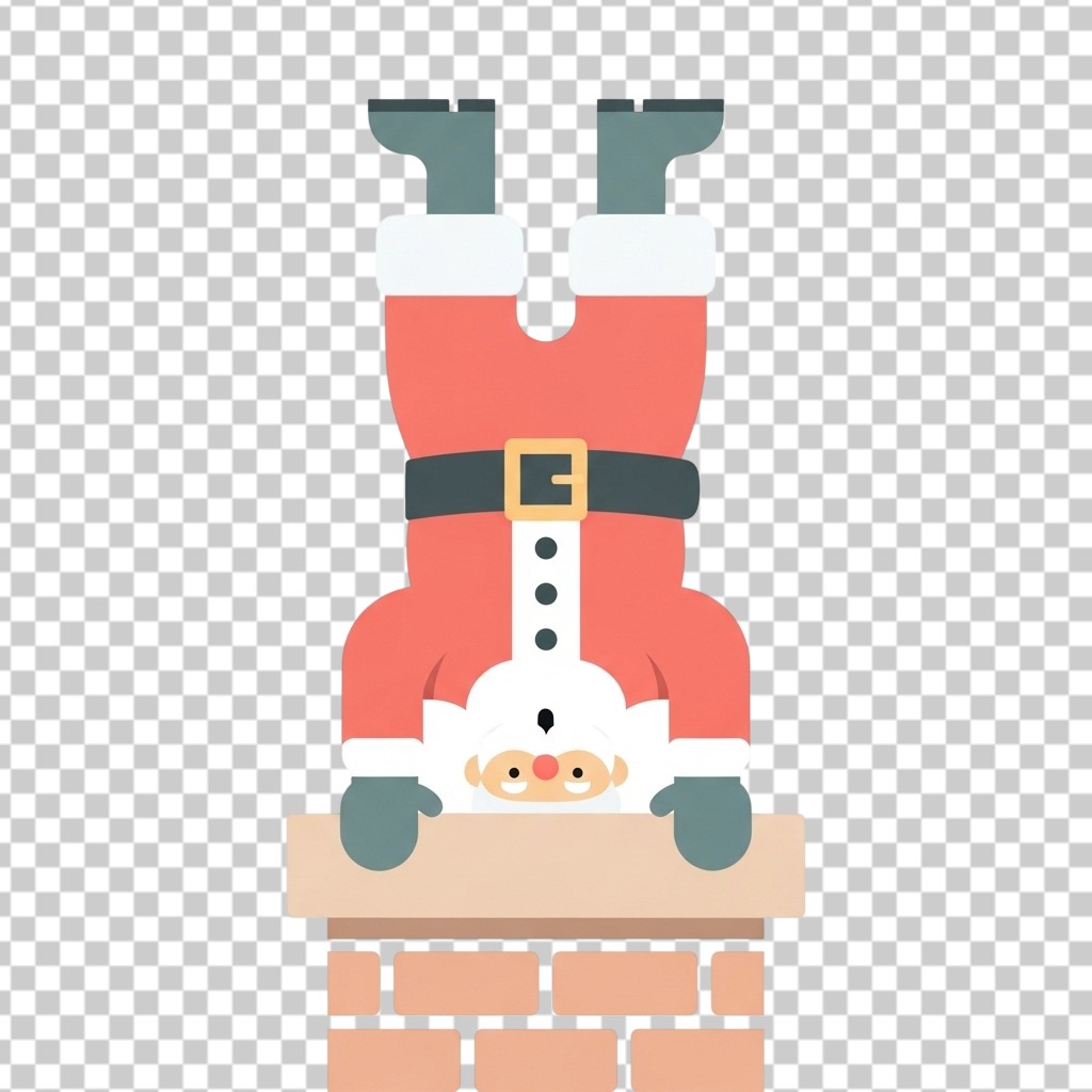 Cartoon Santa Claus Stuck Upside Down in a Brick Chimney PNG Transparent Background