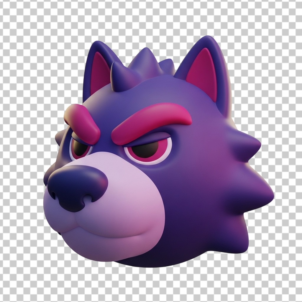 3D Purple Wolf Monster Mascot with Angry Expression PNG Transparent Background