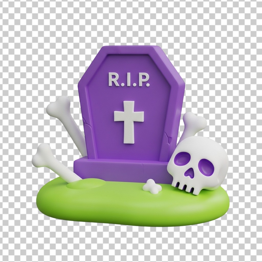 3D Halloween Gravestone RIP Tombstone with Skull and Bones PNG Transparent Background