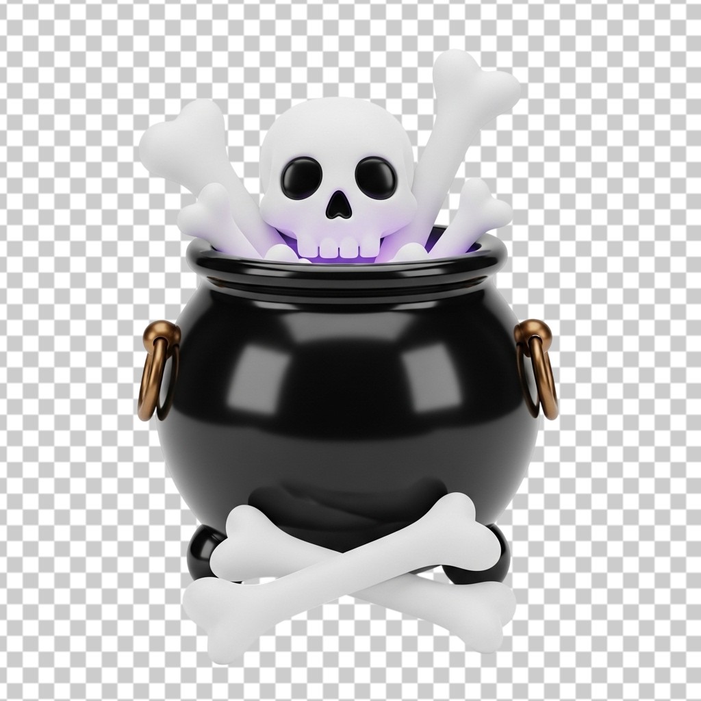 3D Halloween Cauldron with Skulls and Bones Illustration PNG Transparent Background