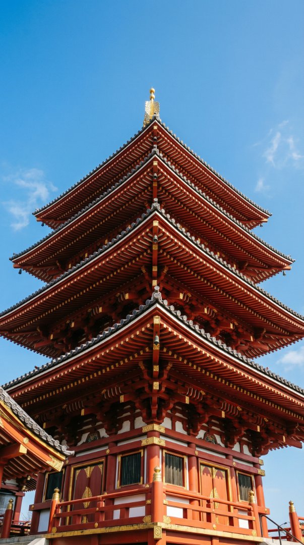 Traditional Japanese Pagoda with Red Wood and Gold Detail