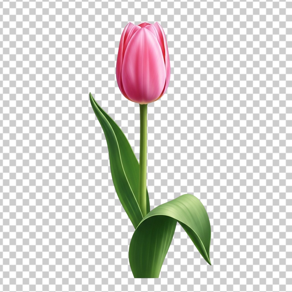 Beautiful Pink Tulip Flower with Long Green Stem PNG Transparent Background