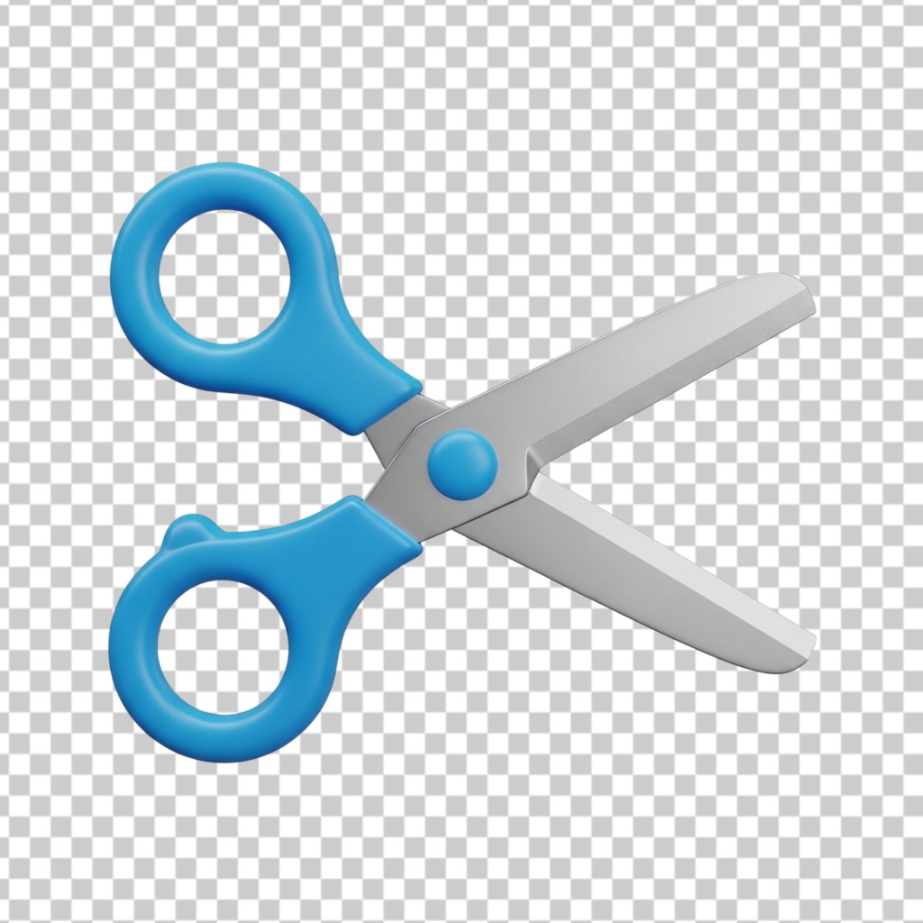 3D Blue Office Scissors Tool for Cutting PNG Transparent Background