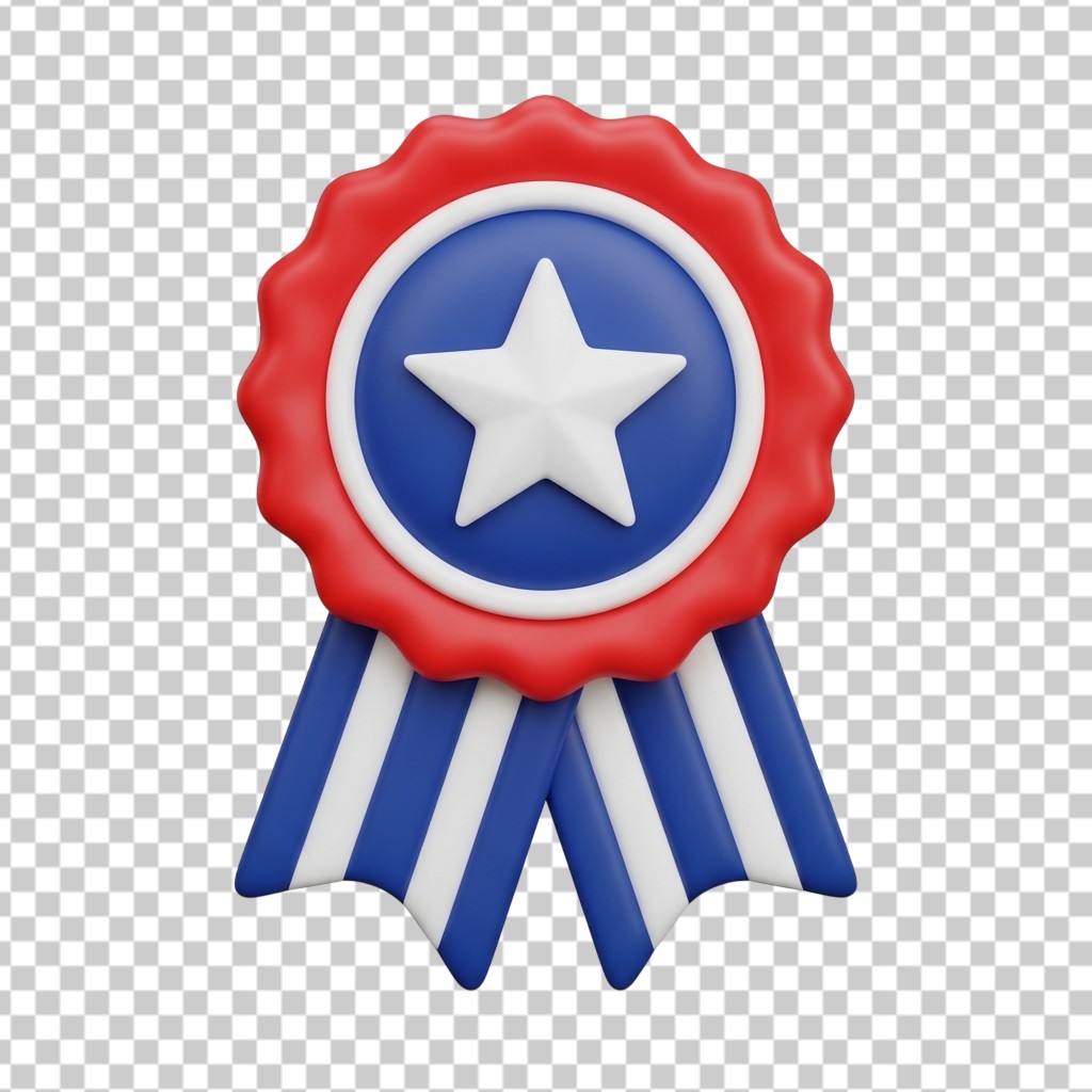 3D Patriotic Blue and Red Star Ribbon Award Medal PNG Transparent Background