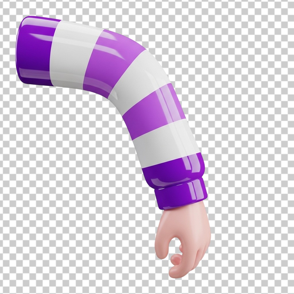 3D Human Arm with Purple and White Striped Compression Sleeve PNG Transparent Background