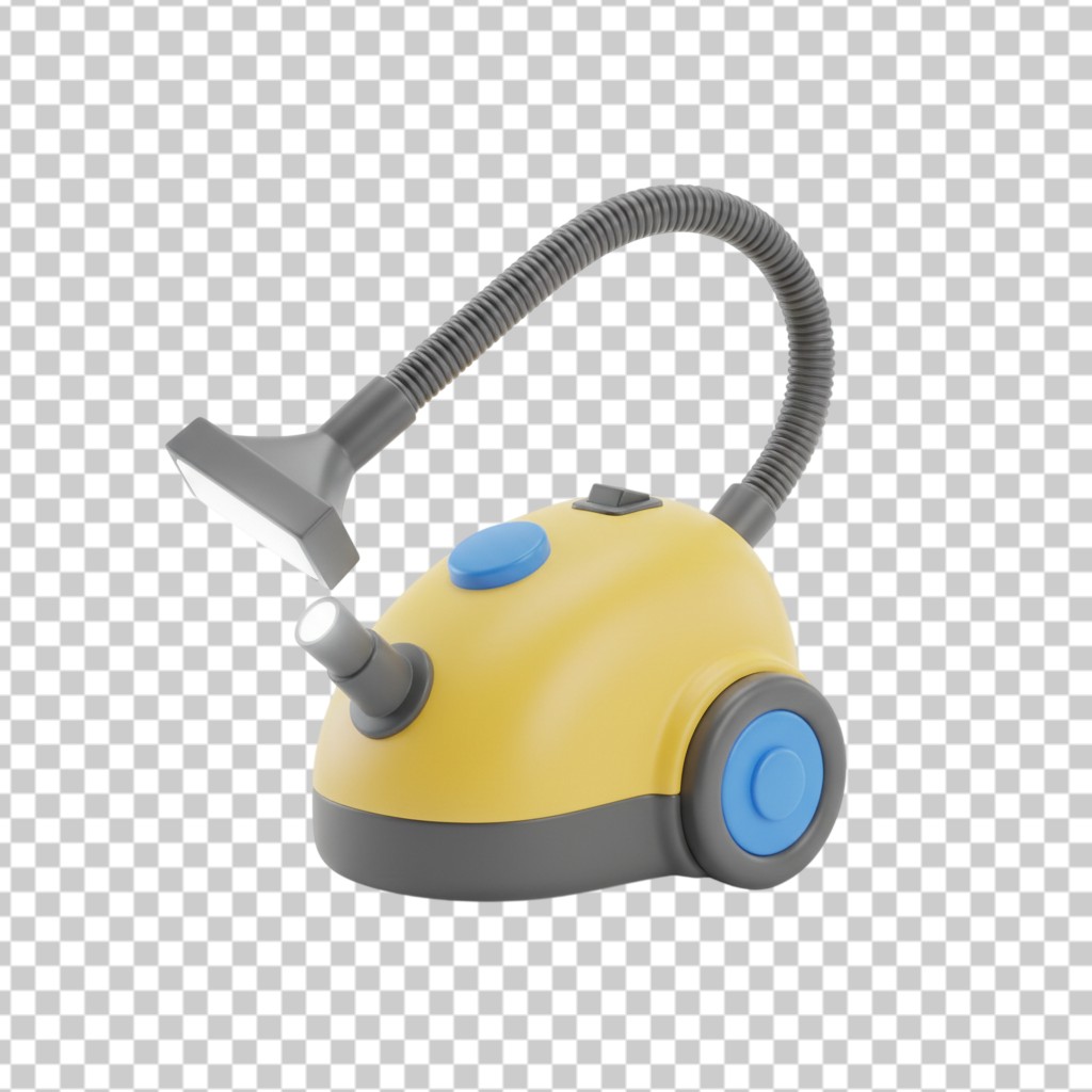 Yellow and Grey Modern Vacuum Cleaner 3D Illustration PNG Transparent Background