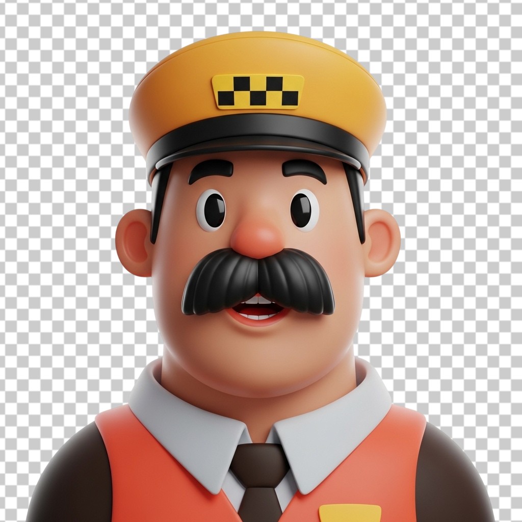 3D Male Taxi Driver Character Avatar in Uniform PNG Transparent Background