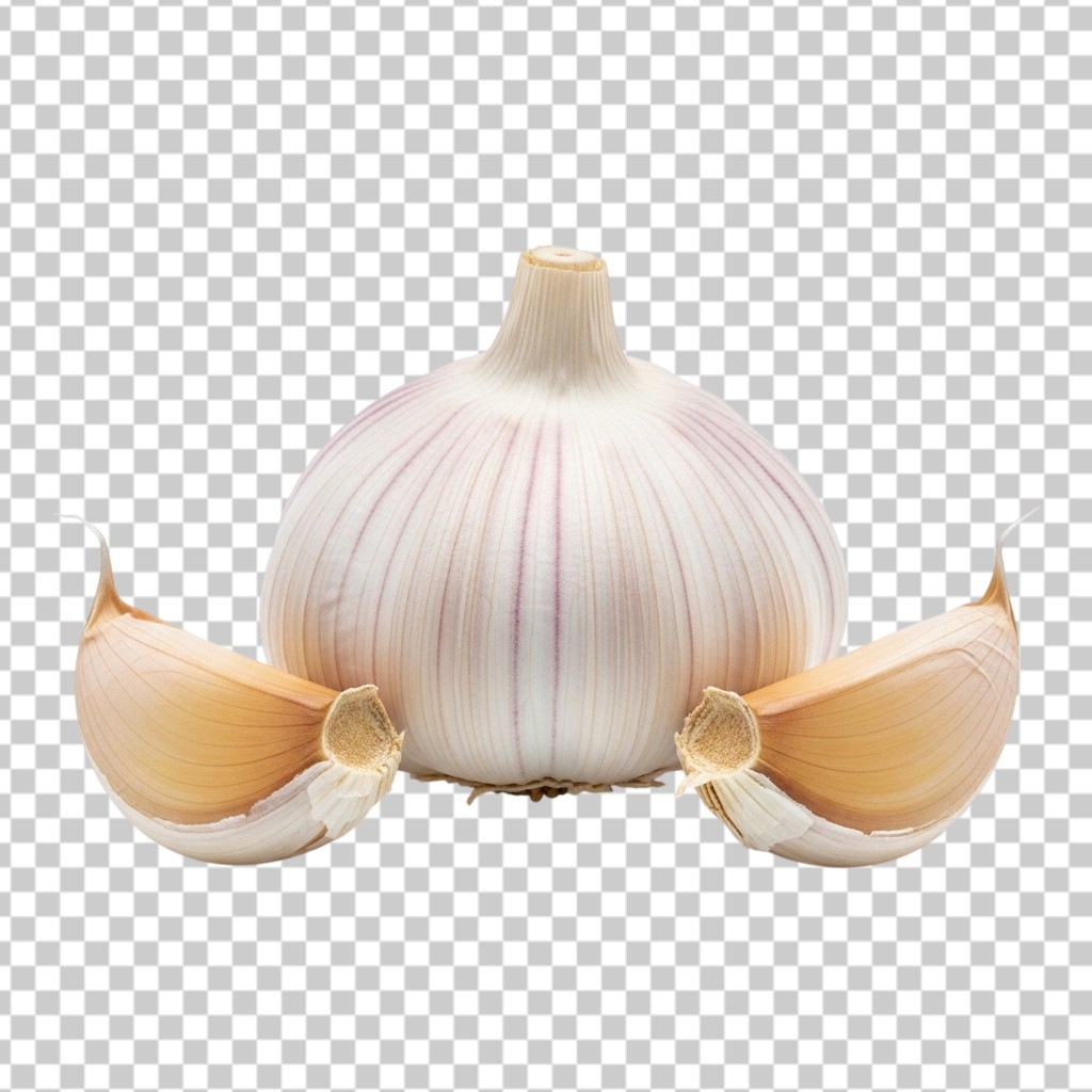 Fresh Garlic Bulb and Sliced Cloves Macro PNG Transparent Background