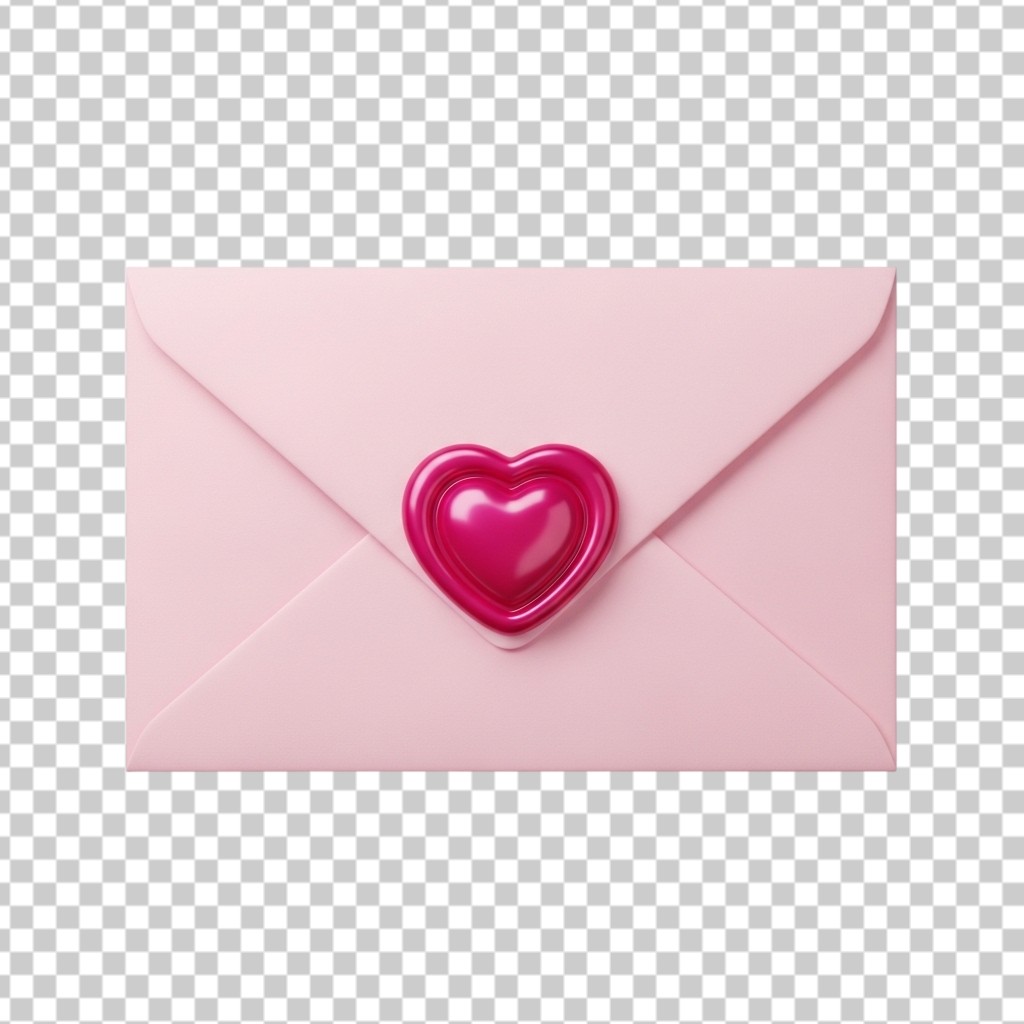 Pink 3D Envelope with Red Heart Wax Seal PNG Transparent Background