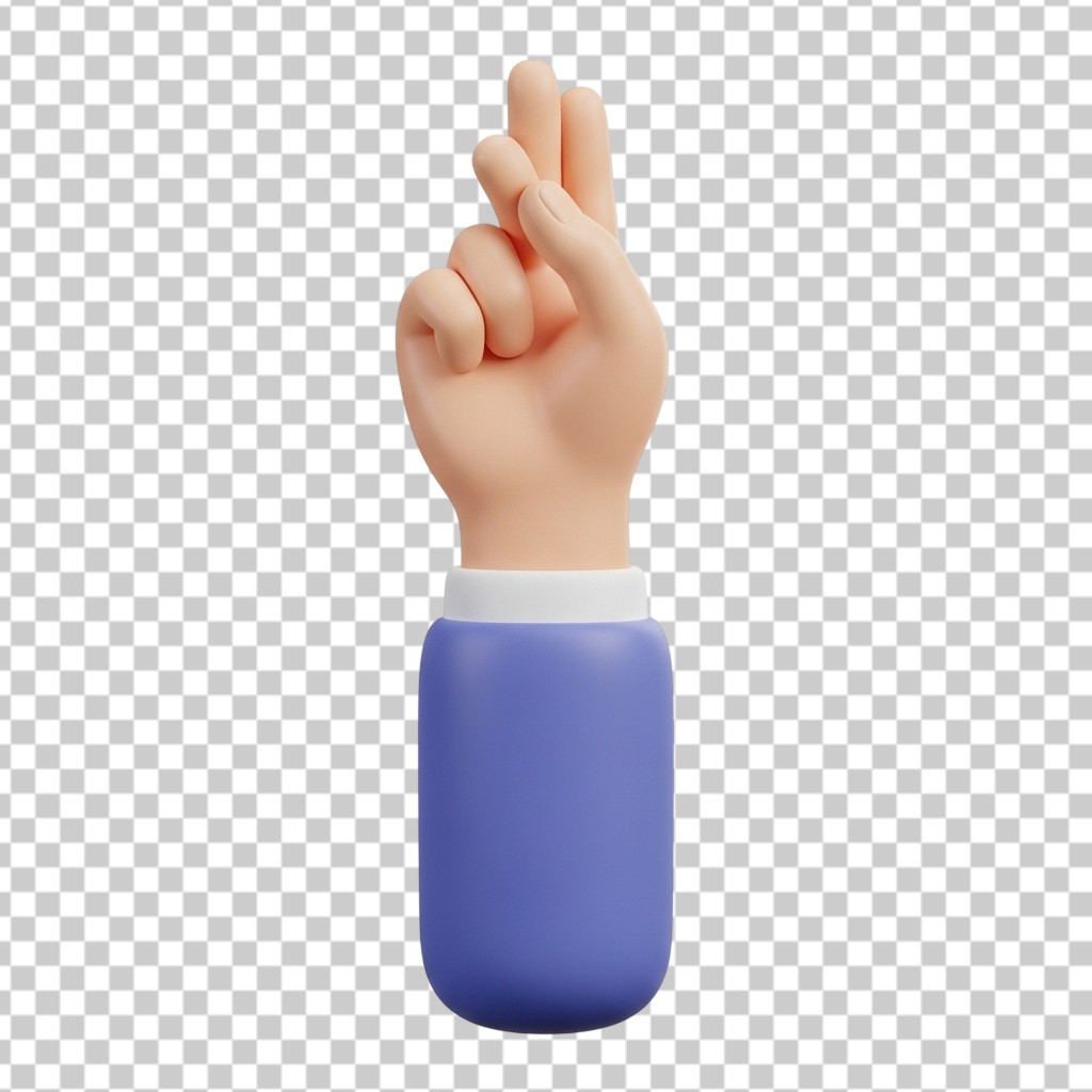 3D Human Hand Gesture Showing Fingers Crossed Sign PNG Transparent Background