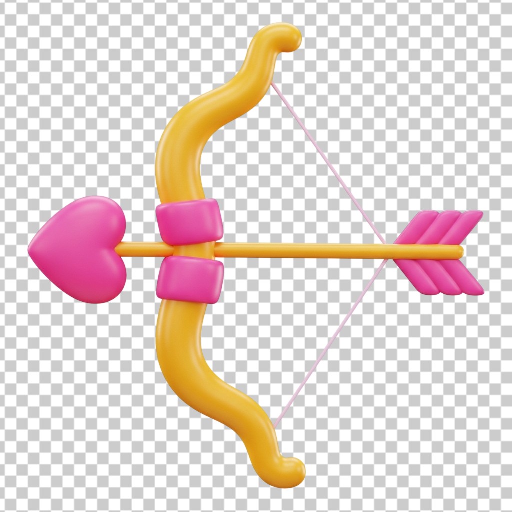 Golden Cupid Bow with Pink Heart Arrow 3D Rendering PNG Transparent Background
