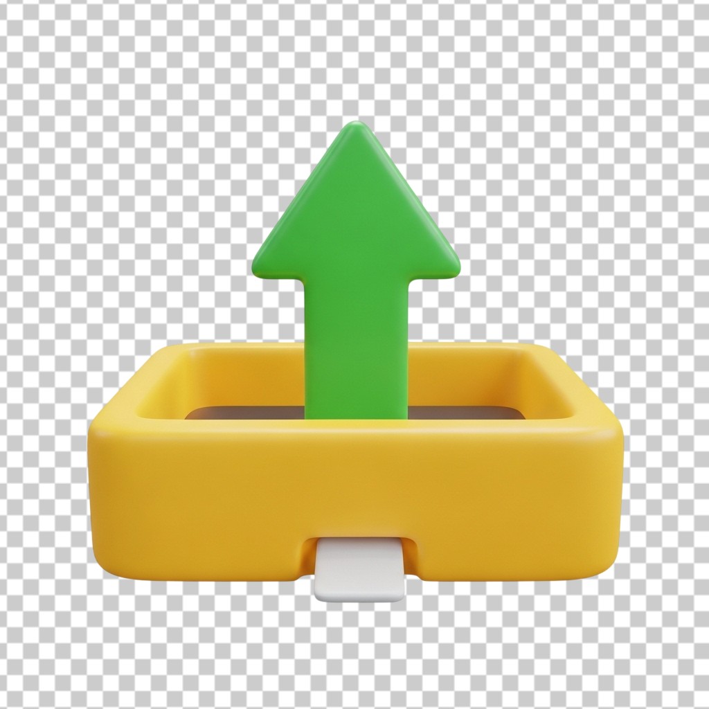 3D File Upload Box with Upward Green Arrow Icon PNG Transparent Background