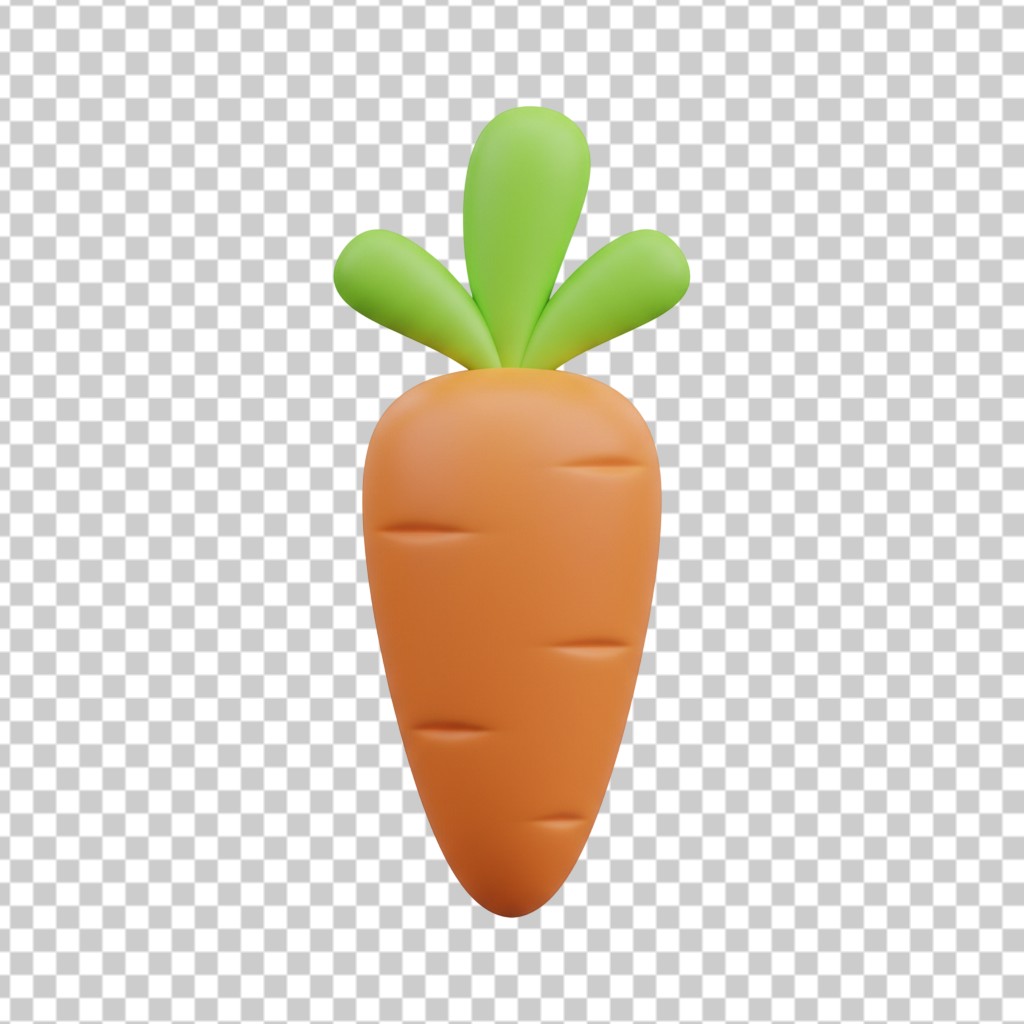 3D Fresh Orange Carrot with Green Leaves PNG Transparent Background