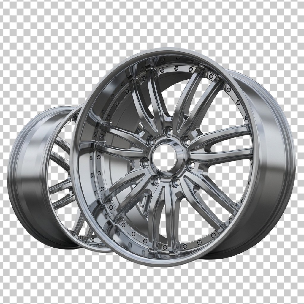 Pair of High Performance Metallic Silver Car Rims PNG Transparent Background