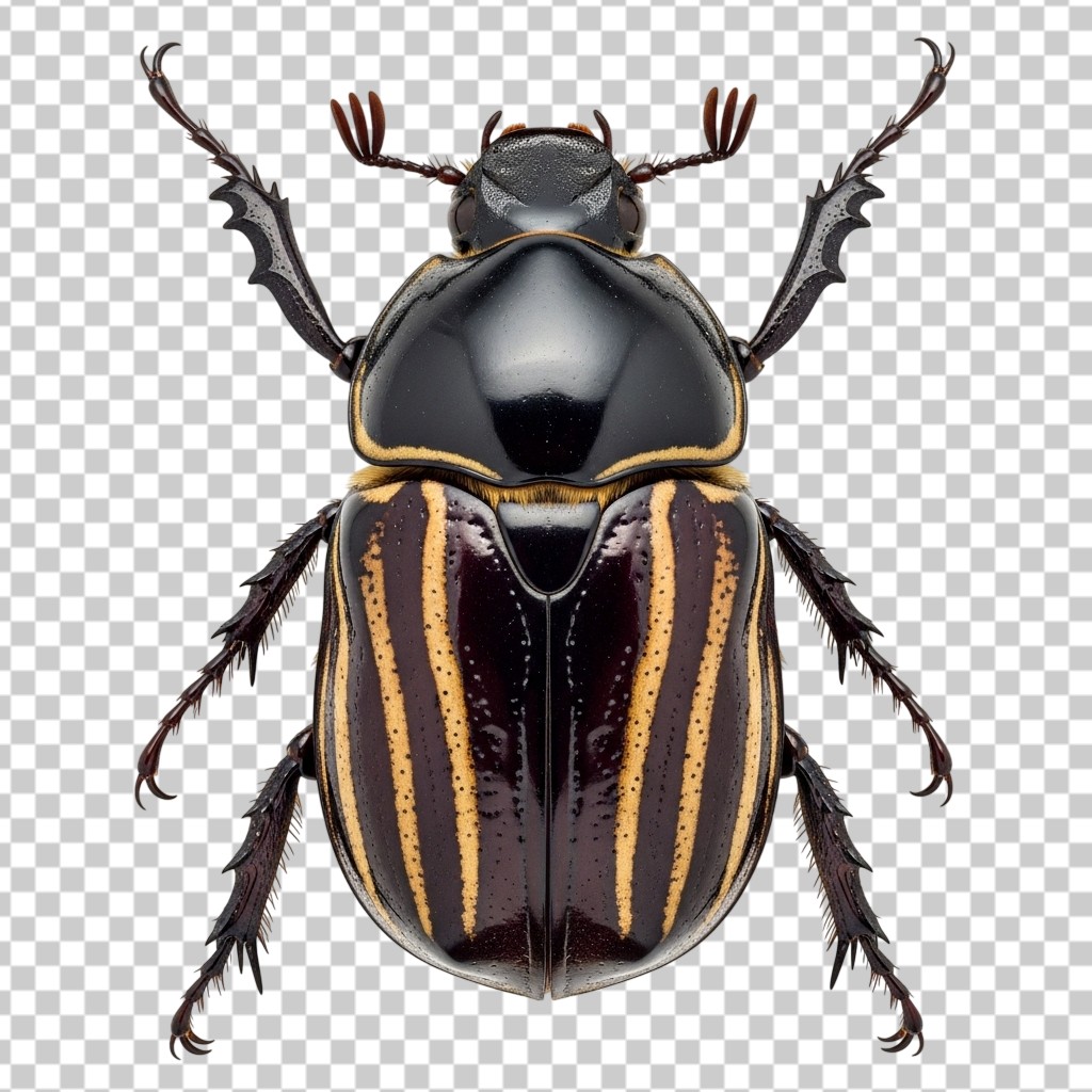 Detailed Insect Illustration of a Striped Beetle PNG Transparent Background