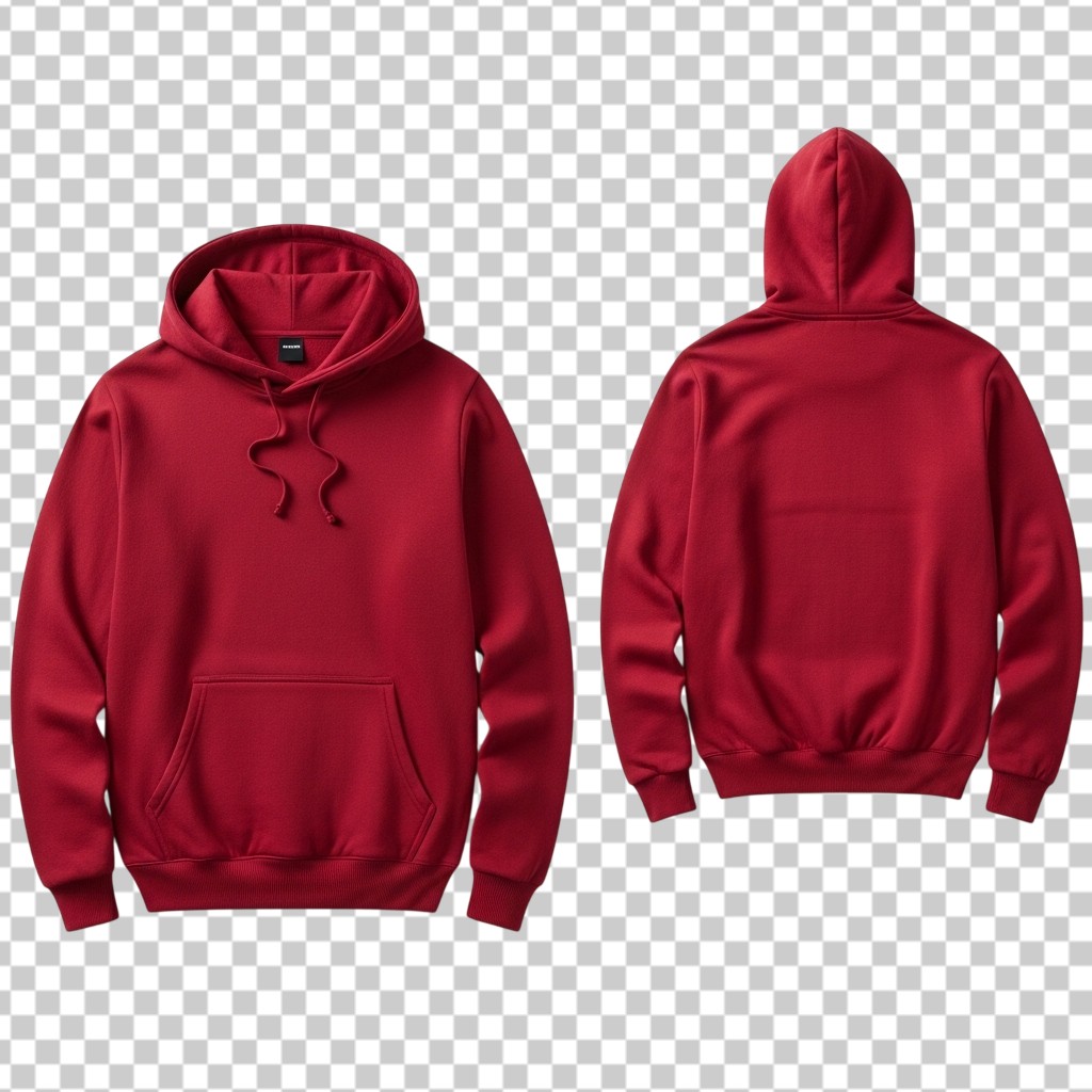 Red Plain Cotton Hoodie Mockup Front and Back View PNG Transparent Background