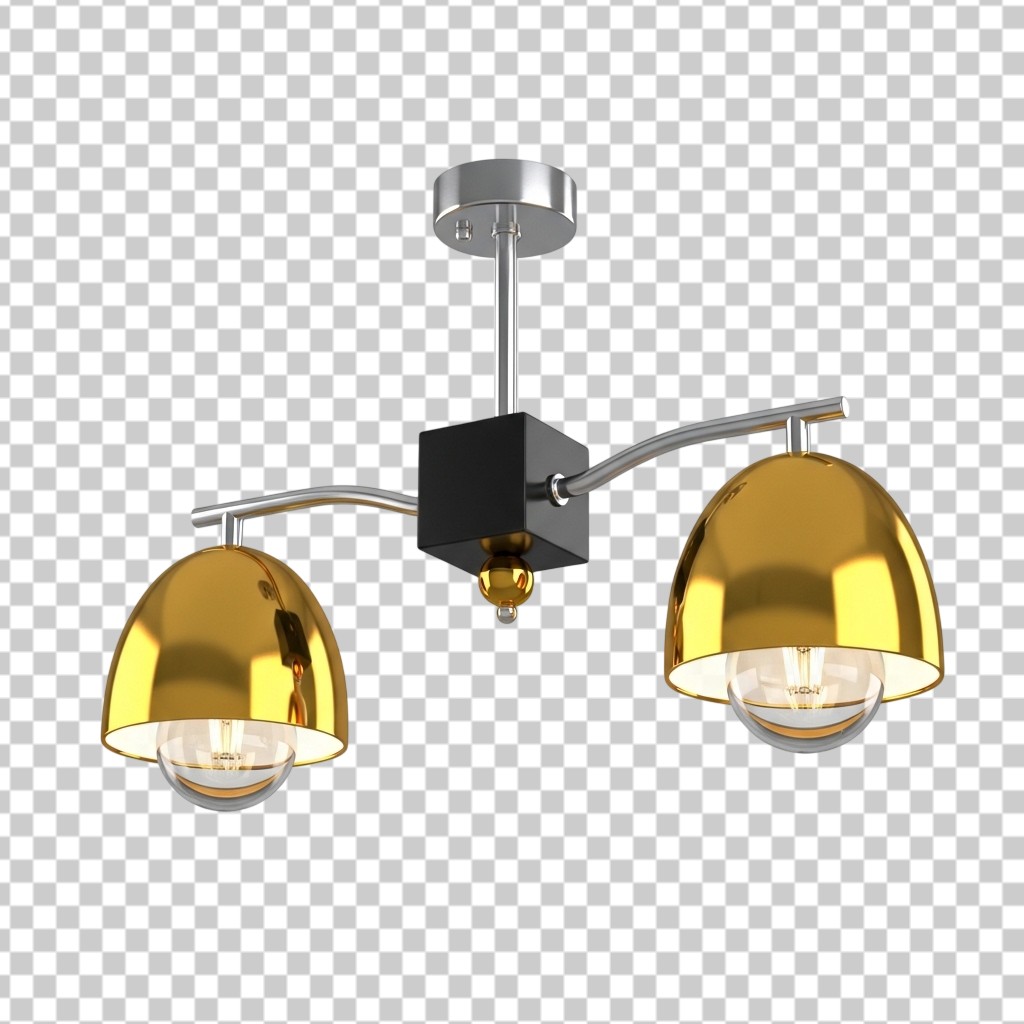 3D Modern Gold Chandelier Ceiling Lamp PNG Transparent Background