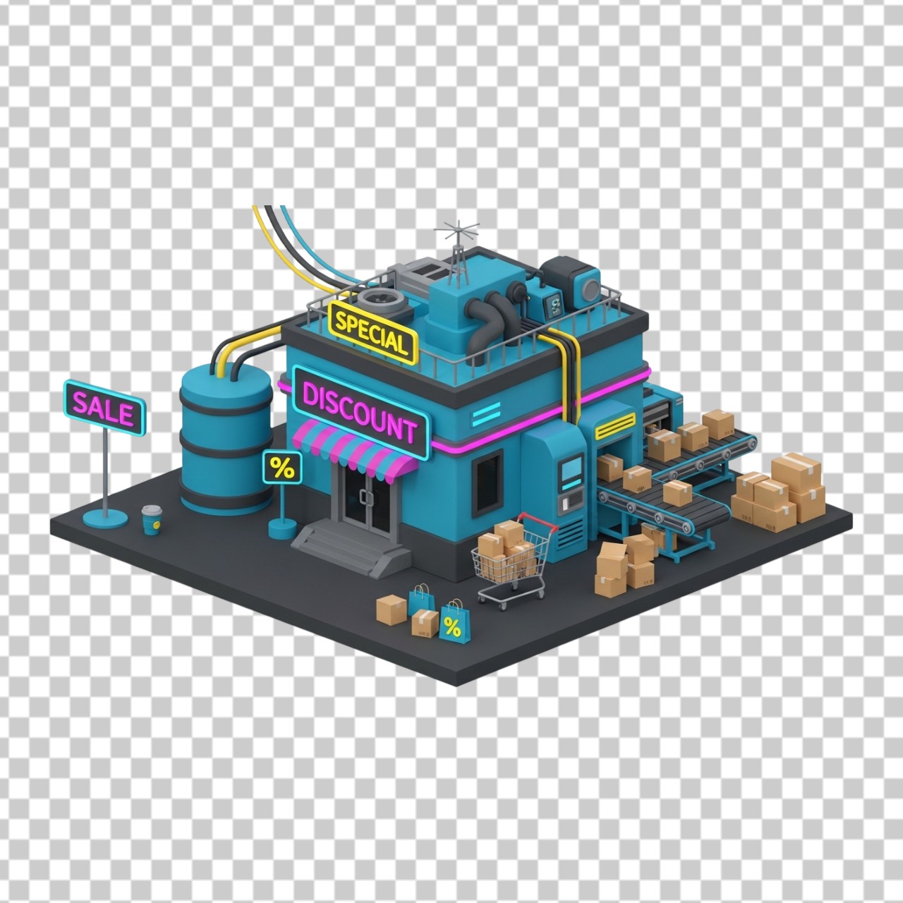 3D Isometric E-commerce Warehouse Store Building PNG Transparent Background