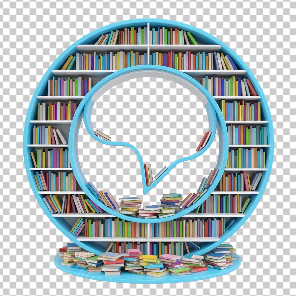 Creative Circular Blue Bookshelf Filled with Books PNG Transparent Background