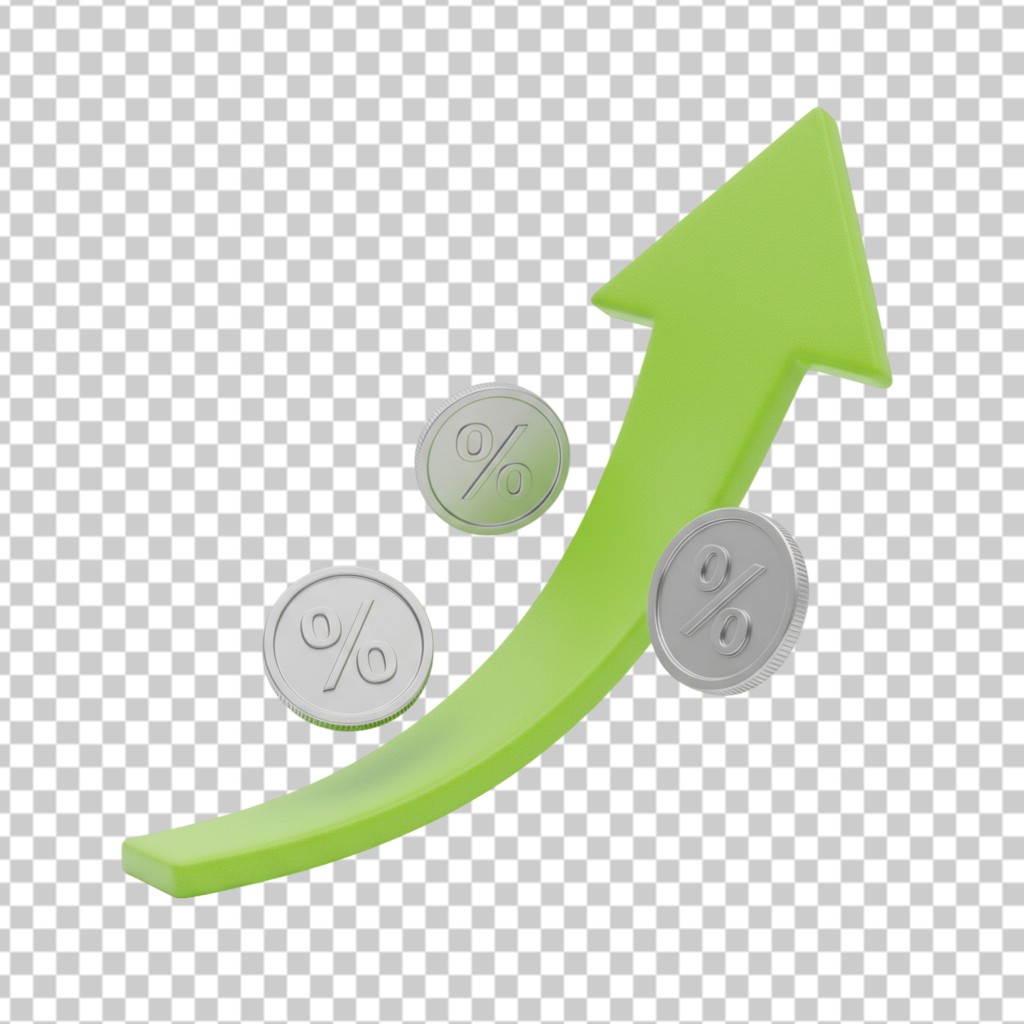 3D Business Success Arrow with Percent Symbol Coins PNG Transparent Background