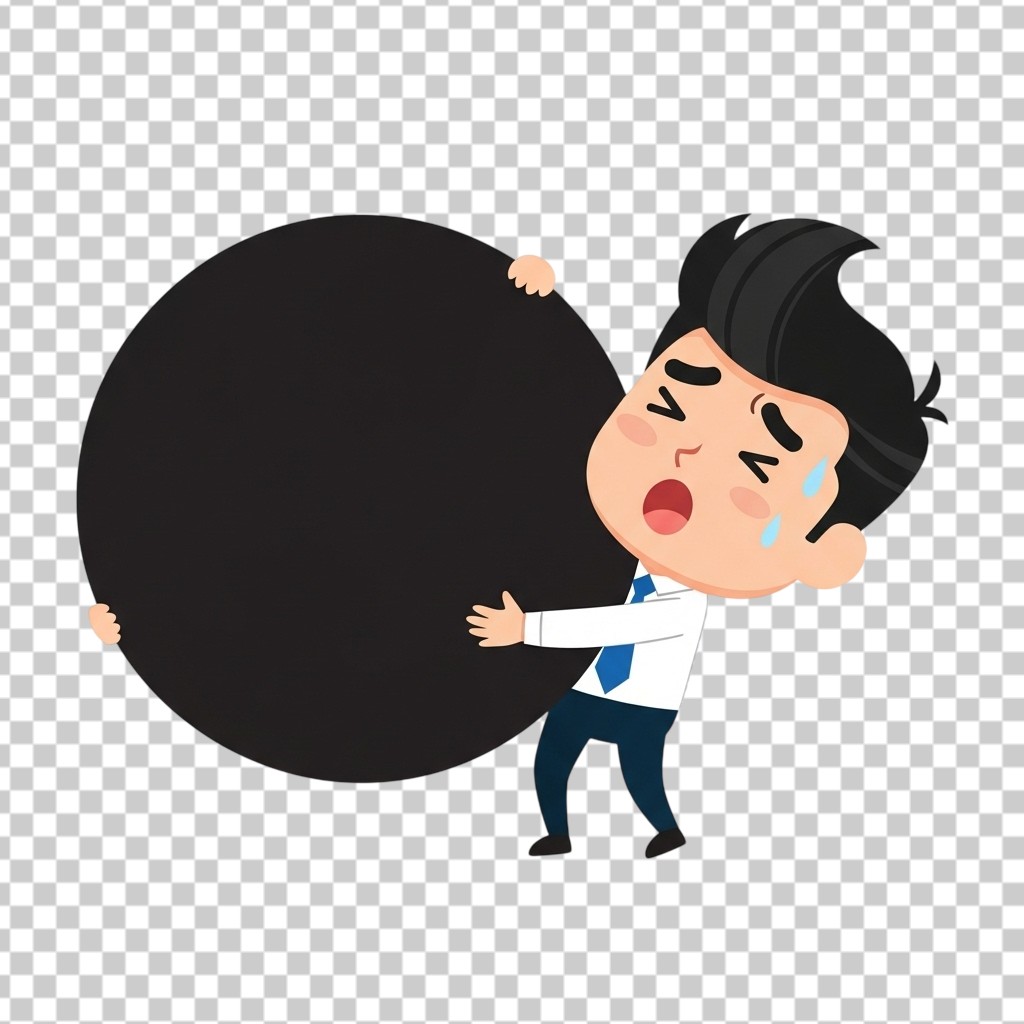 Tired Businessman Character Lifting Heavy Black Weight Ball PNG Transparent Background