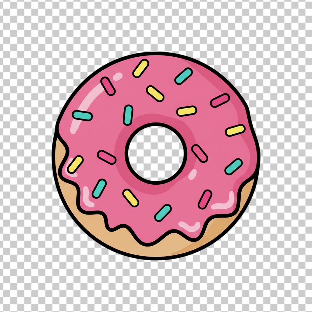 Pink Strawberry Frosted Donut with Chocolate Drip Design PNG Transparent Background