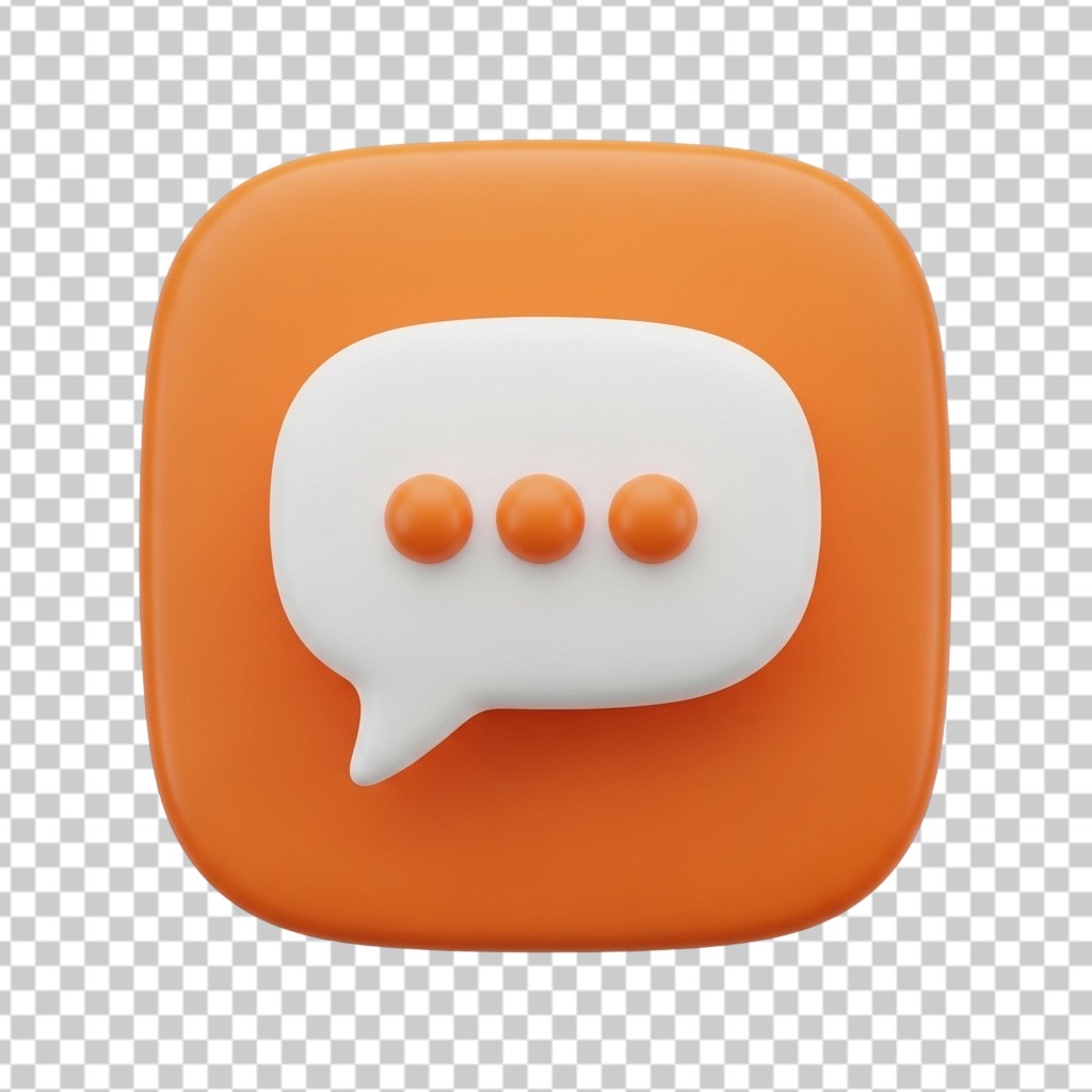 3D Orange Chat Message Bubble Icon with Three Dots PNG Transparent Background