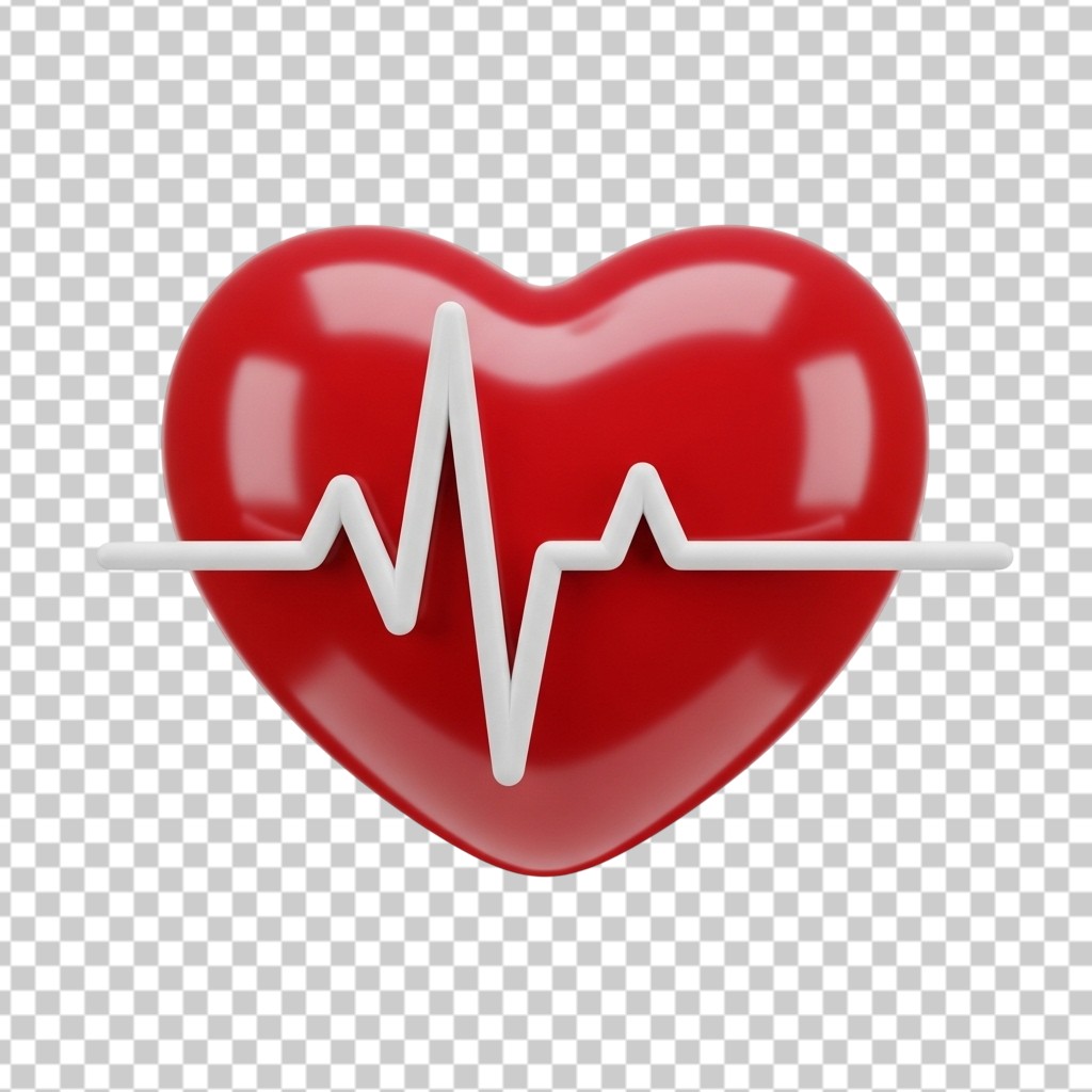 3D Red Heart with Pulse Heartbeat Line for Medical Health PNG Transparent Background