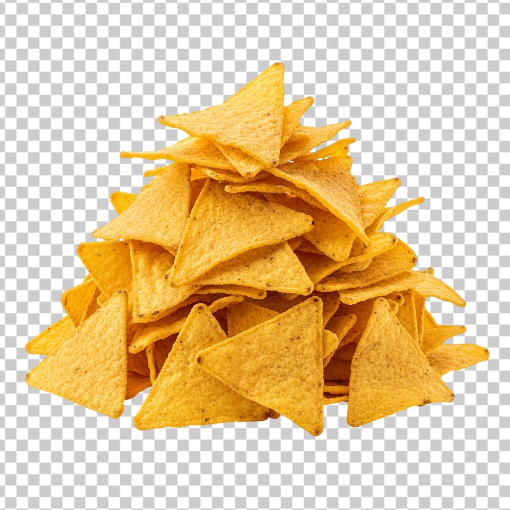 Pile of Crispy Yellow Corn Tortilla Nacho Chips PNG Transparent Background