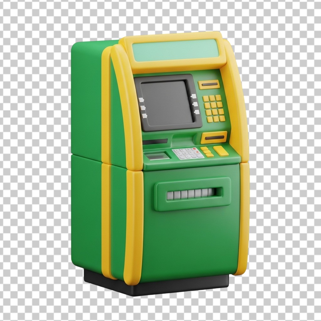 Green ATM Cash Machine Banking 3D Illustration PNG Transparent Background