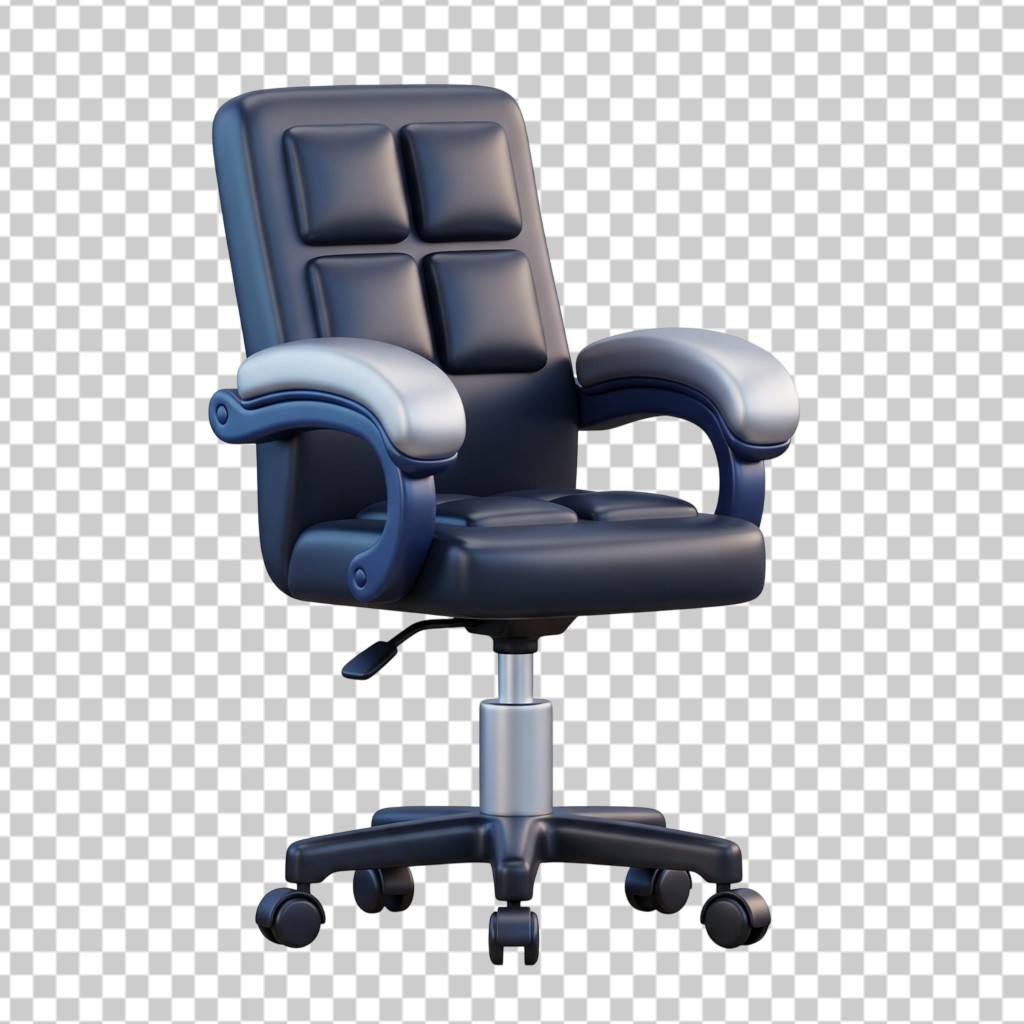 3D Black Leather Executive Office Chair PNG Transparent Background