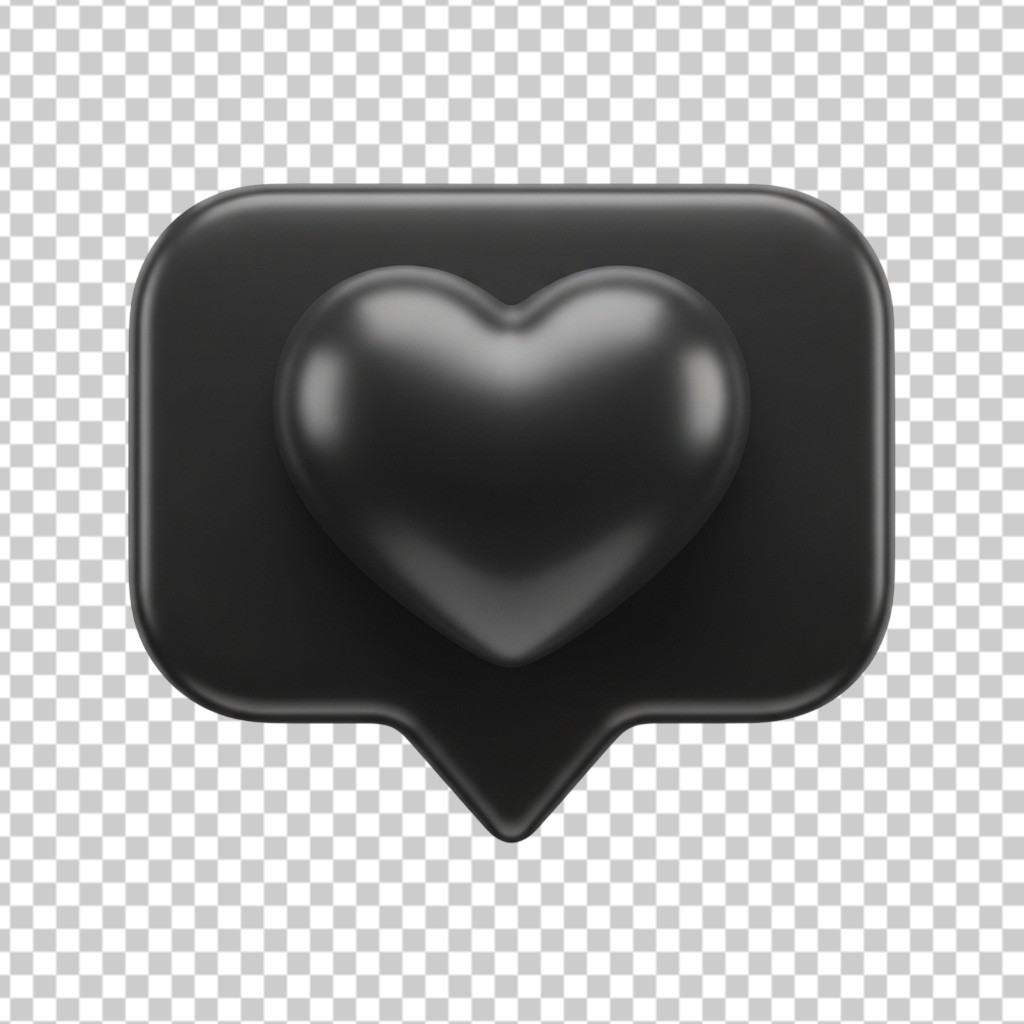 3D Black Glossy Heart Social Media Notification Icon PNG Transparent Background