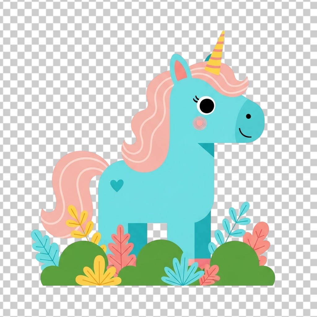 Cute Blue Cartoon Unicorn with Pink Mane Illustration PNG Transparent Background