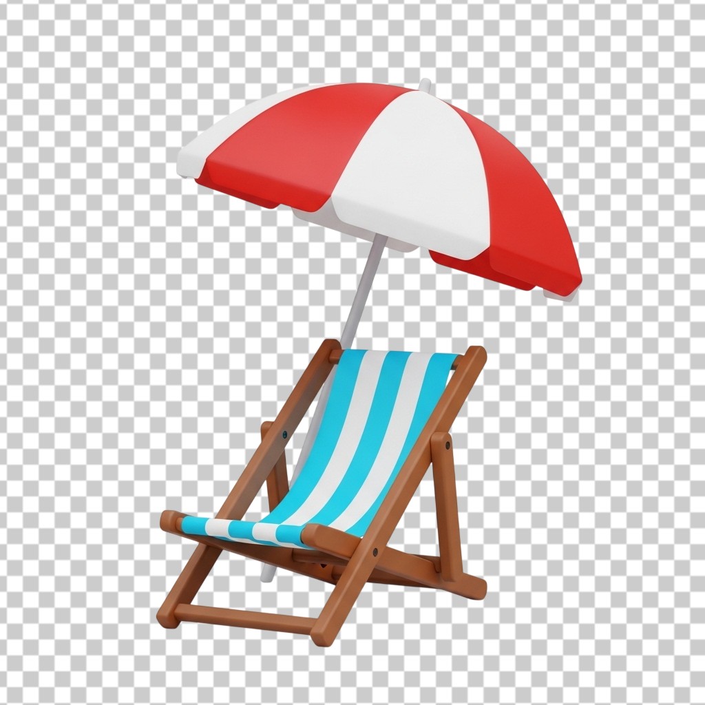 Beach Chair and Striped Umbrella Travel 3D Illustration PNG Transparent Background