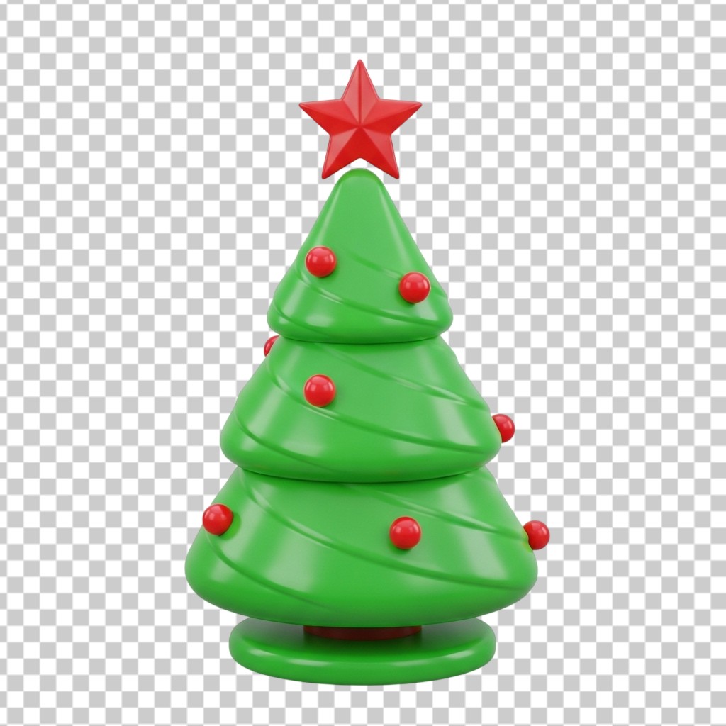3D Stylized Green Christmas Tree with Red Star PNG Transparent Background