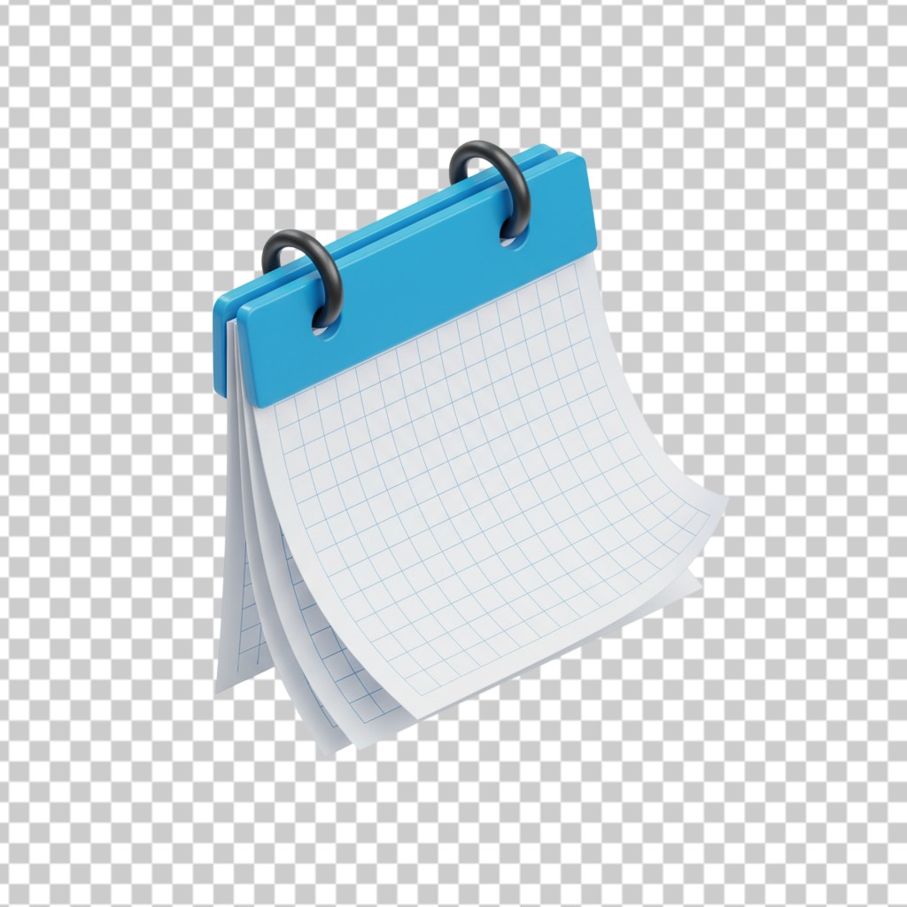 3D Blue Spiral Standing Desk Calendar PNG Transparent Background