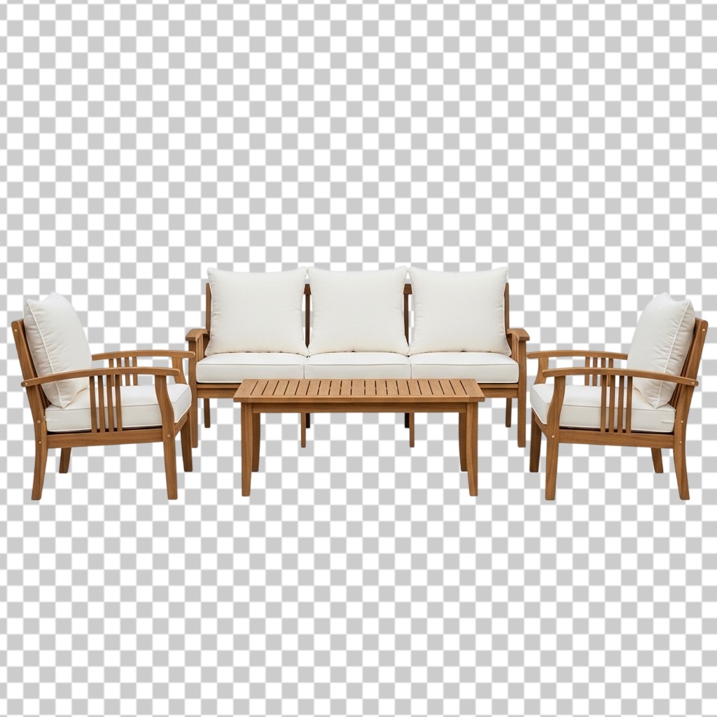 Modern Outdoor Wooden Patio Sofa and Armchair Furniture Set PNG Transparent Background