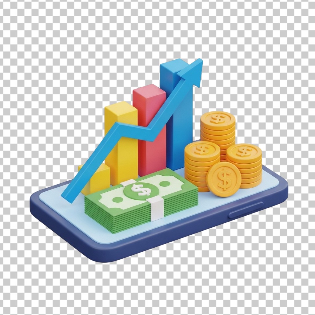 3D Finance Icons with Rising Charts Money and Coins PNG Transparent Background