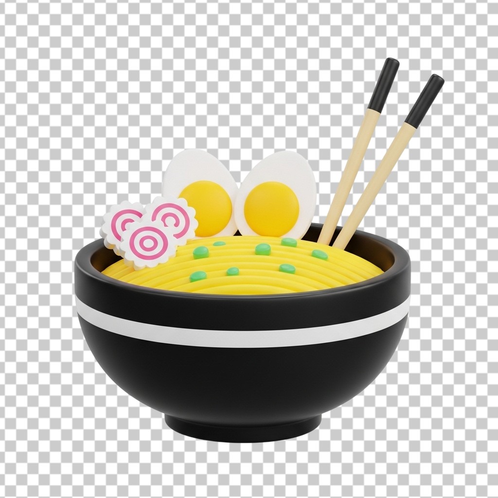 3D Japanese Ramen Noodle Soup Bowl PNG Transparent Background